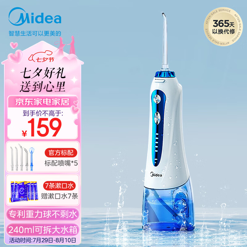 美的(Midea)冲牙器 洗牙器 水牙线 家用便携电动洗牙神器 送礼物推荐牙齿清洁器 正畸适用MC-BJ0102 小蓝鲸价格:167.30元!