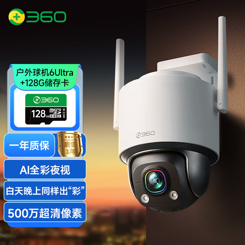 360户外球机6Ultra昼夜真彩版500万超清家用无线监控器手机远程家庭监控360度全景室外摄像防水夜视价格:619.00元!