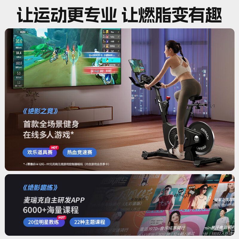 麦瑞克(MERACH)动感单车健身房级家用磁控运动器材室内自行车 黑曜骑士MR-S12B2价格:2499.00元!