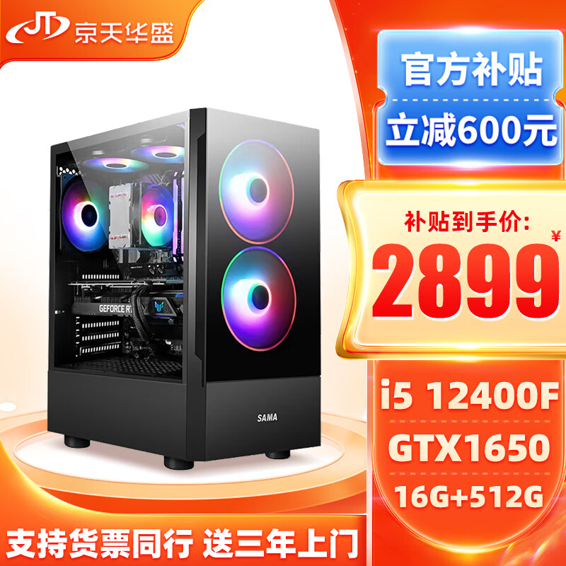 京天华盛 战无畏515 i5-12400F/GTX1650 4G/16G DDR4/512G固态台式机吃鸡游戏主机组装电脑DIY主机UPC价格:3099.00元!