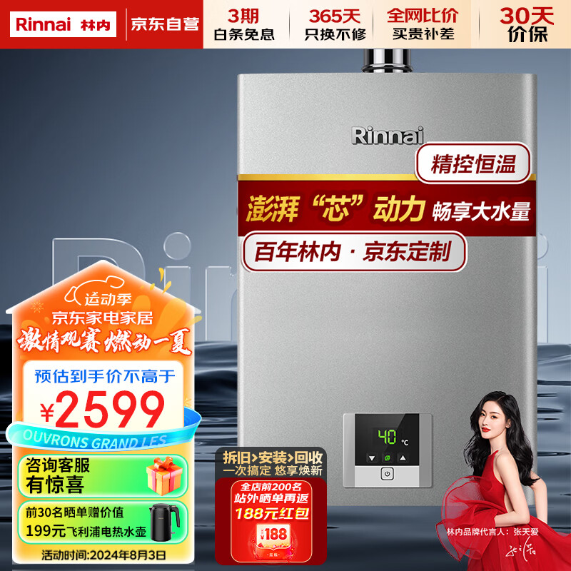 林内(Rinnai)11升燃气热水器 澎湃大水量 百年定制 芯动力系列RUS-11QD31(JSQ22-D31)价格:2599.00元!