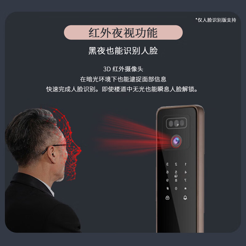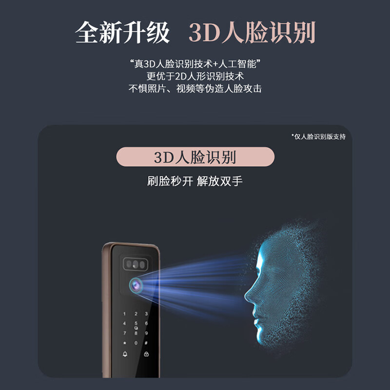 开锁方式:临时密码,密码,人脸识别,手机小程序,刷卡,钥匙,半导体指纹