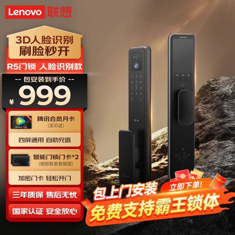 联想(Lenovo)智能门锁R5人脸识别指纹锁 C级锁芯 入户门锁防盗门锁 门卡密码锁 家用电子锁 智能锁电子门锁价格:1199.00元!