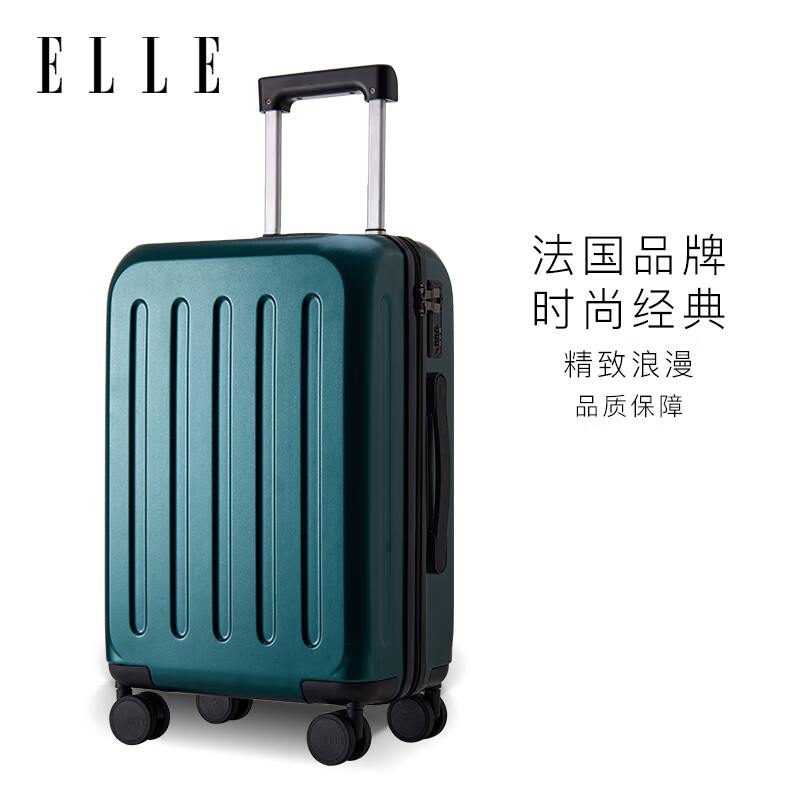 ELLE行李箱20英寸墨绿色拉杆箱女士旅行箱时尚万向轮密码箱拉链箱价格:207.00元!
