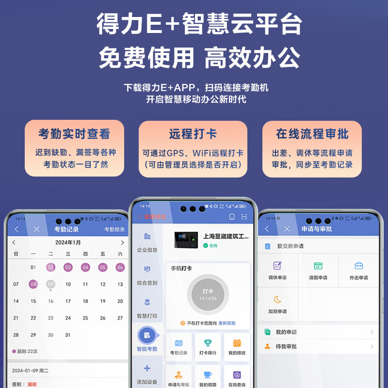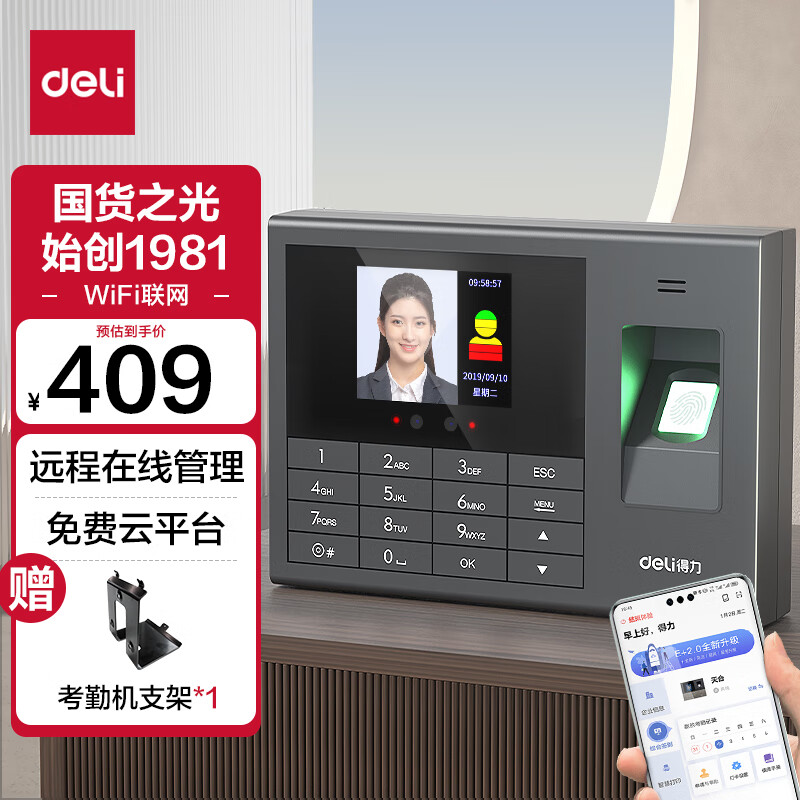 得力智能云考勤机 打卡机人脸+指纹识别 wifi联网 远程在线管理 实时查看 异地多店管理 3765CS价格:399.00元!
