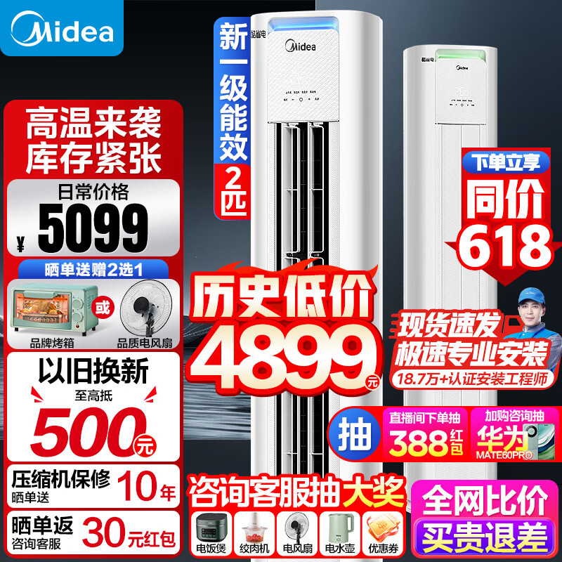 美的(Midea)2匹 酷省电PRO新一级能效 变频冷暖空调立式柜机自清洁家用客厅立式升级款云朵系列以旧换新价格:4899.00元!