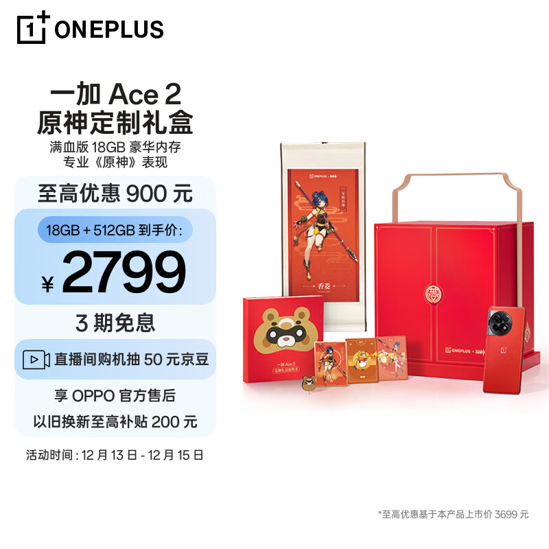 OPPO 一加 Ace 2 原神定制礼盒 18GB+512GB 熔岩红 满血版 18GB 豪华内存 满血版骁龙8+旗舰平台 5G游戏手机价格:3699.00元!