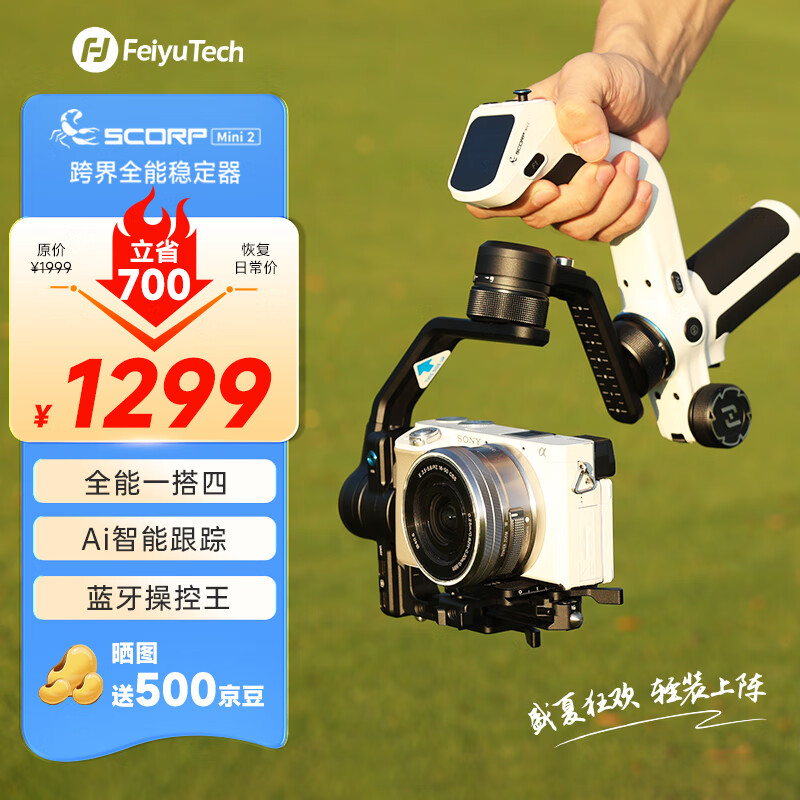 FeiyuTech 飞宇蝎子mini2微单稳定器 三轴智能防抖 自带提壶 Scorp mini2四合一 跨界全能手机稳定器价格:1299.00元!