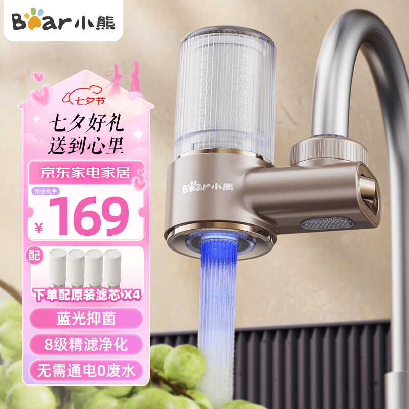 小熊(Bear)净水器水龙头家用水龙头过滤器自来水前置过滤器厨房卫生间净水机除氯CX-E0047四芯价格:169.00元!