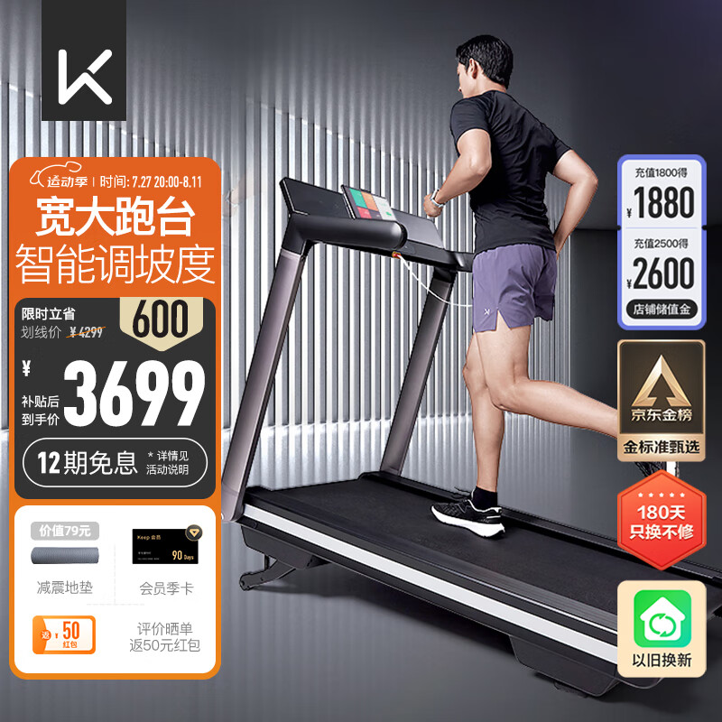 Keep跑步机家用健身器材 智能坡度调节 宽大跑台走步机 家庭锻炼K4黑价格:3699.00元!