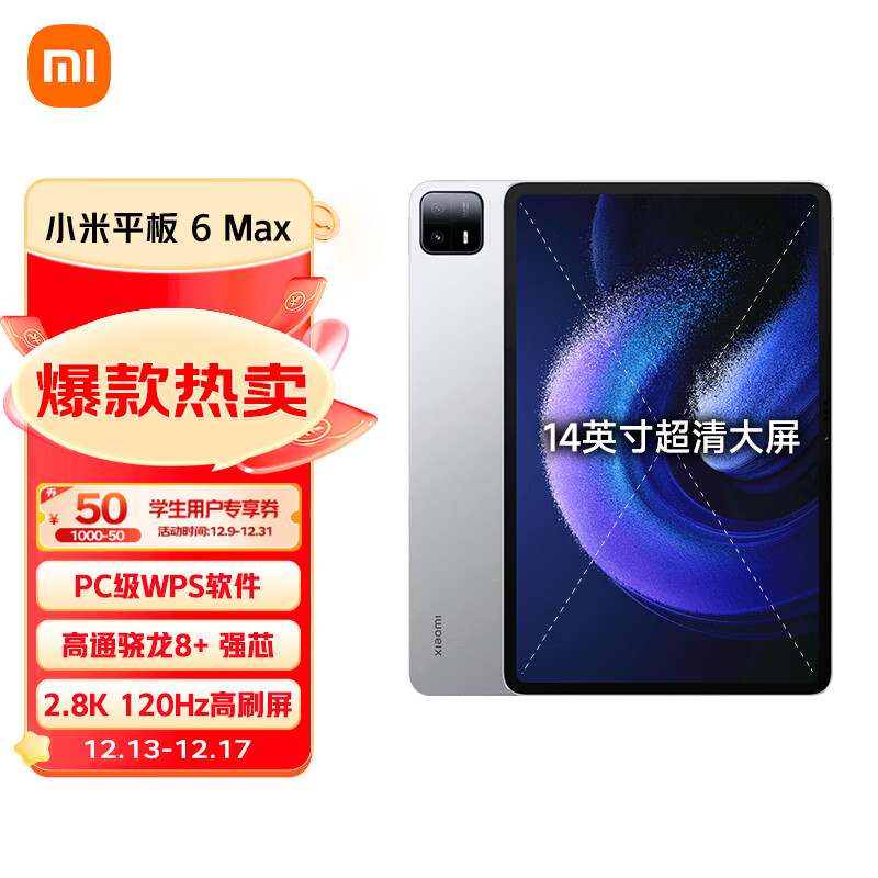 小米平板6 MAX(xiaomiPad)14英寸 高通骁龙8+ PC级WPS 2.8K 120Hz高刷 12+512GB大屏办公平板笔记本电脑 银色价格:4399.00元!