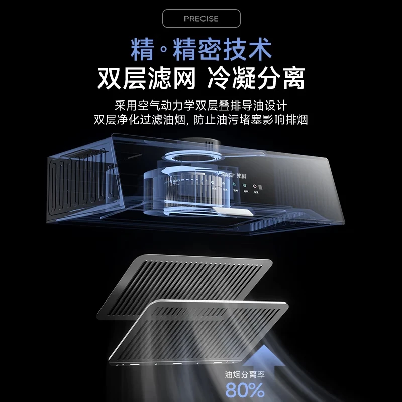 先科(SAST)油烟机中式抽油烟机家用吸油烟机老式小尺寸厨房顶吸式一体脱排抽烟机公寓出租房小户型用 触摸体感智控+自动清洗-上门安装价格:699.00元!