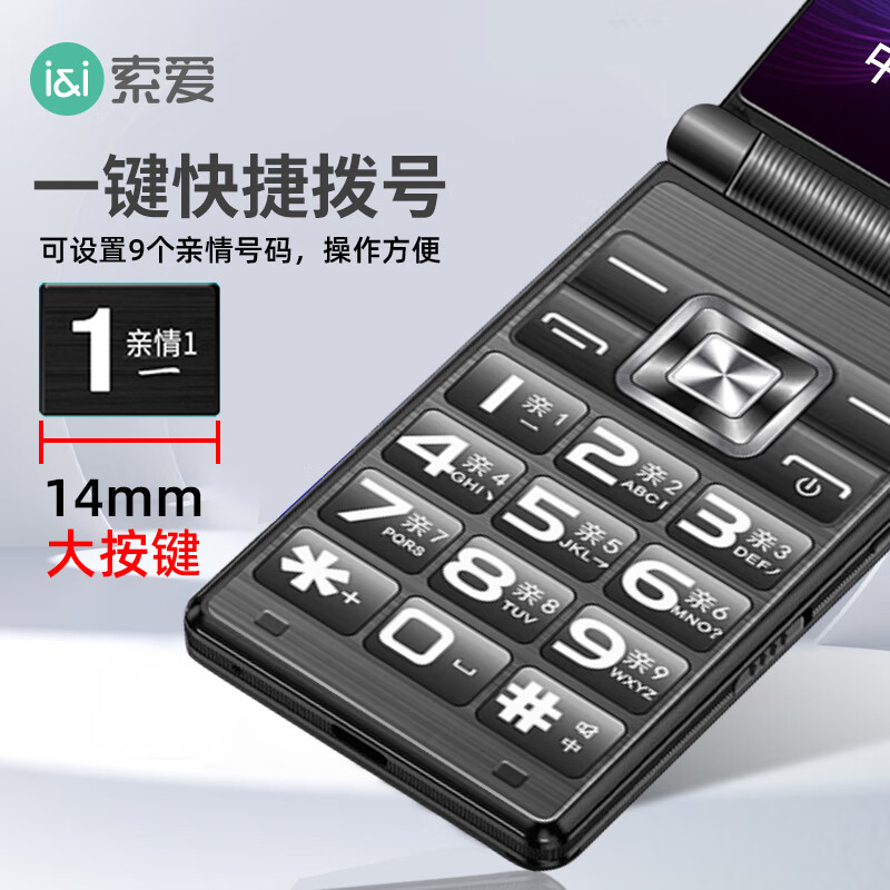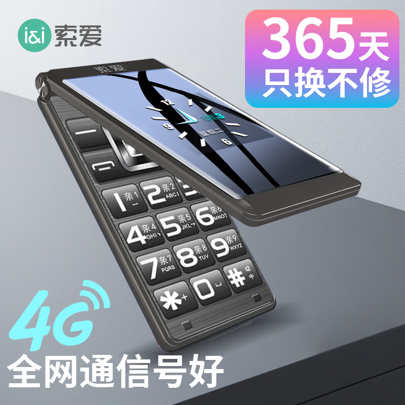 索爱(soaiy)Z6通翻盖老年人手机4G移动联通电信 双卡双待大字大声语音播报 铁灰色价格:249.00元!