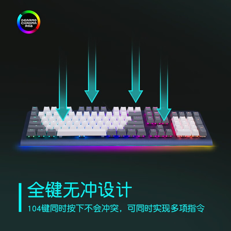 迪摩(DEARMO)F31机械键盘有线键盘游戏键盘104键RGB背光键盘吃鸡键盘电脑键盘 宝石蓝 红轴价格:159.00元!