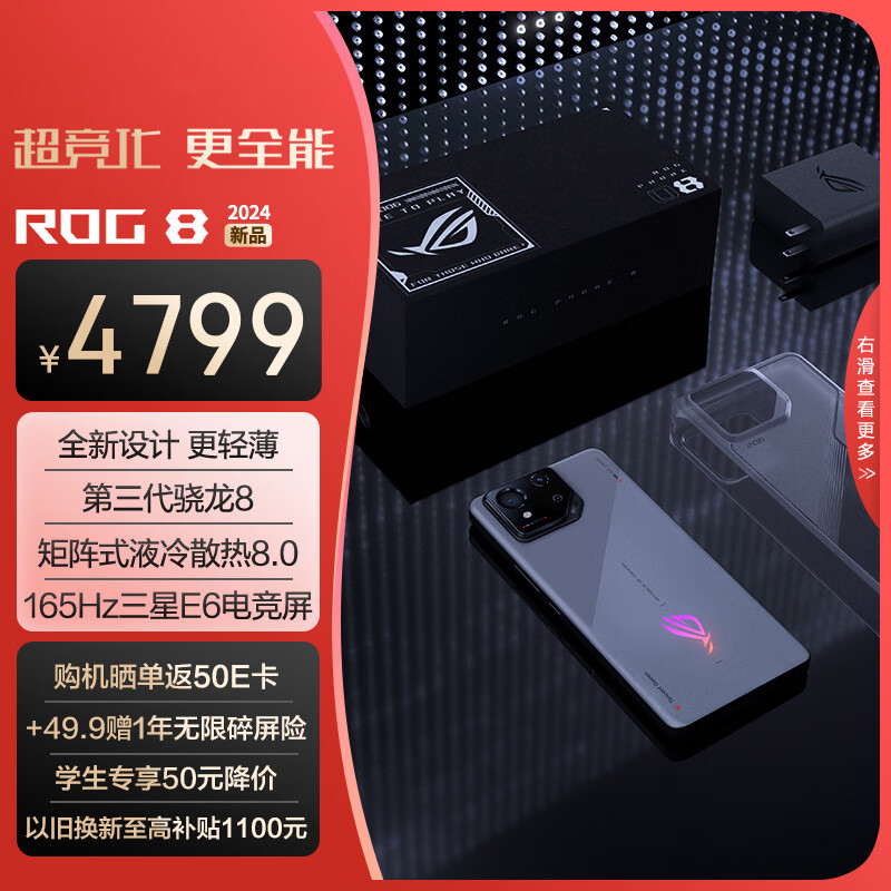 ROG8 AI游戏手机12+256风暴灰 骁龙8Gen3 矩阵式液冷散热8.0 三星电竞屏 165Hz高刷【碎屏险套装版】价格:4848.90元!