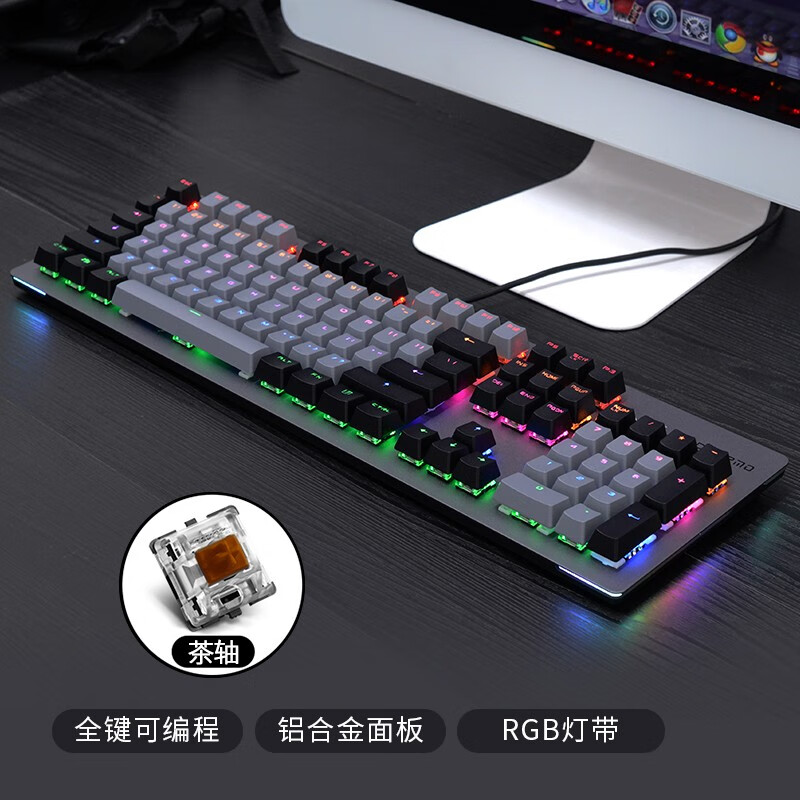 迪摩(DEARMO)F20机械键盘有线键盘游戏键盘104键混光+RGB键盘吃鸡键盘电脑键盘 深空灰 茶轴价格:159.00元!