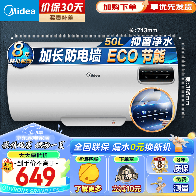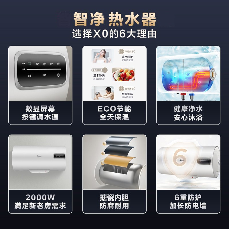美的(Midea)储水式电热水器电家用多升数可选经济适用防护速热电热水器机械升级数显款X0 50L 2000W 【适用2-3人】数显价格:649.00元!