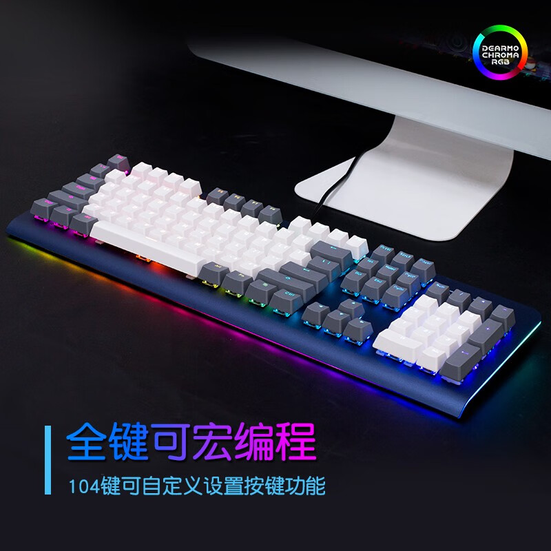 迪摩(DEARMO)F31机械键盘有线键盘游戏键盘104键RGB背光键盘吃鸡键盘电脑键盘 宝石蓝 青轴价格:159.00元!