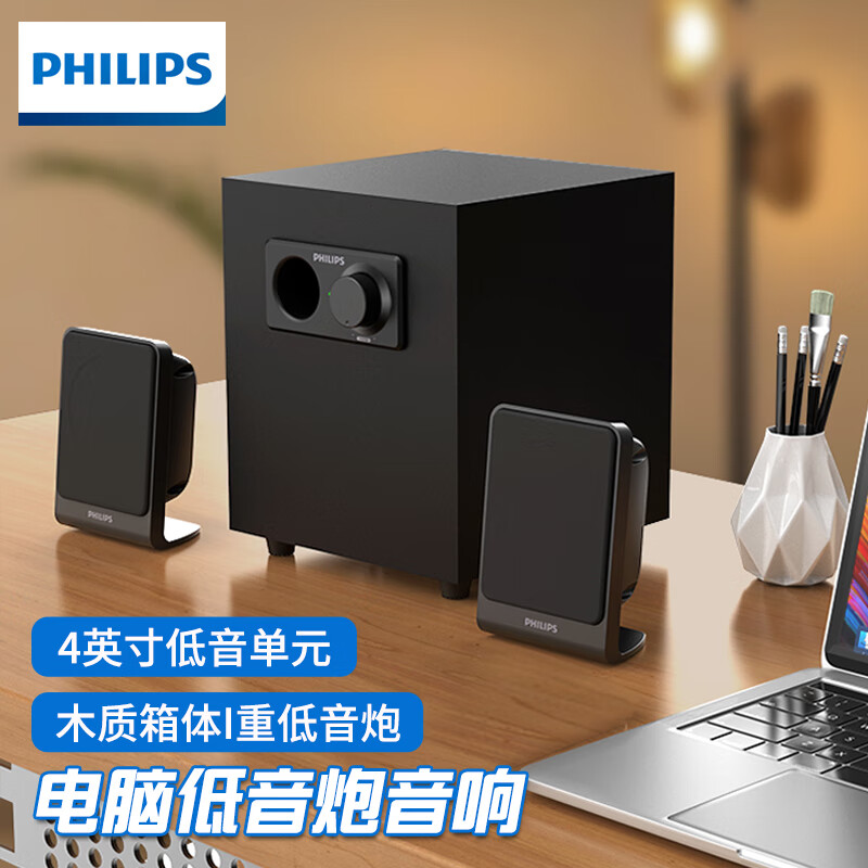 飞利浦(PHILIPS) SPA1301 2.1声道多媒体音箱 台式电脑音响有线桌面笔记本游戏家用低音炮价格:149.00元!