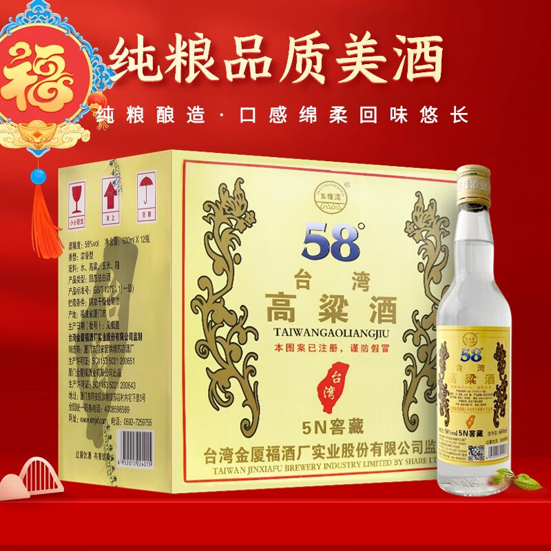 五缘湾 高度白酒浓香型粮食酒 台湾高粱酒 五N窖藏58度600ml*12瓶整箱价格:199.00元!