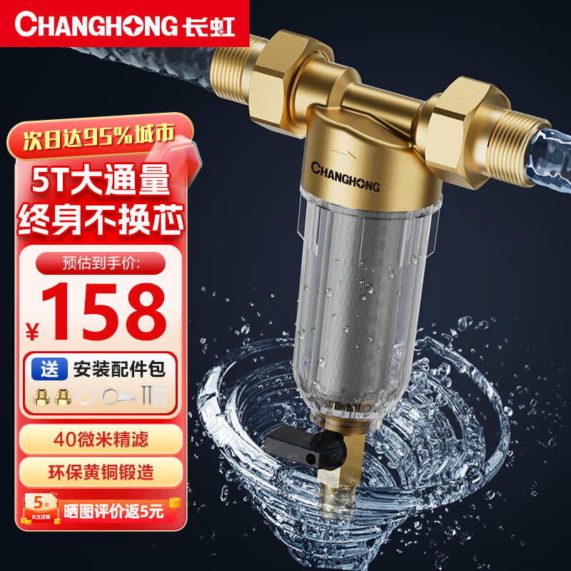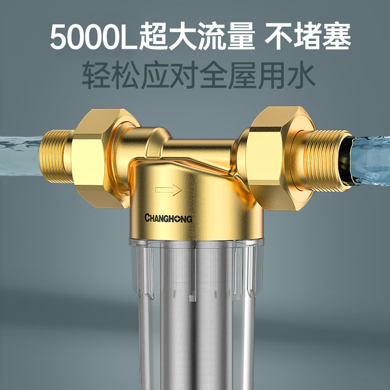长虹(CHANGHONG) 5T全屋中央净水器自来水前置过滤器反冲洗家用大流量冲洗净水机商用奶茶果茶店 4分活接 -【5T大流量】价格:158.00元!