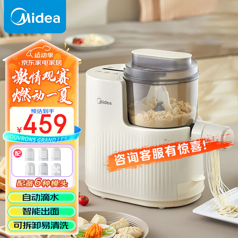 美的(Midea)面条机 压面机家用 全自动电动饺子皮机一体机和面 智能饸饹机 【双向挤压更筋道】MJ-NL11价格:459.00元!