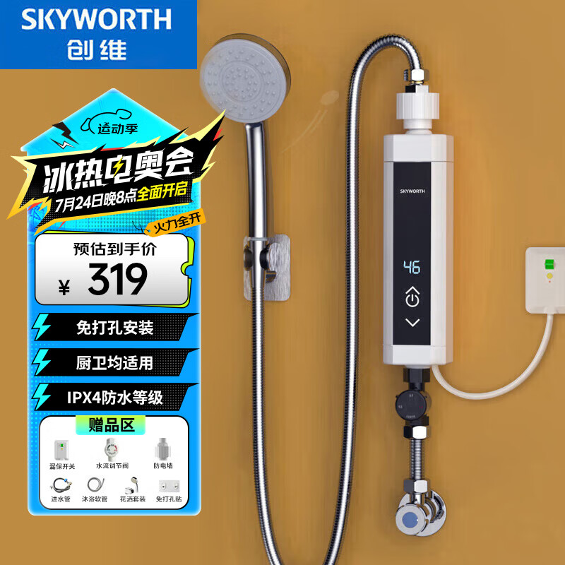 创维(Skyworth)即热式电热水器 速热式家用小型恒温淋浴免打孔变频恒温加热宝D842白5500w沐浴款+送空开+水电分离价格:419.00元!