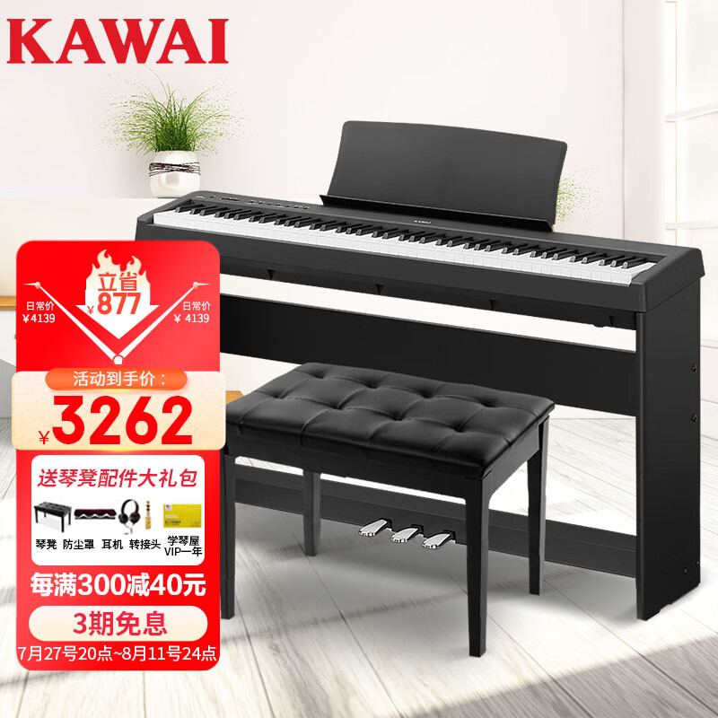 卡瓦依(KAWAI)电钢琴ES110GBS家用立式88键重锤便携电子钢琴成人儿童初学家用价格:3742.00元!