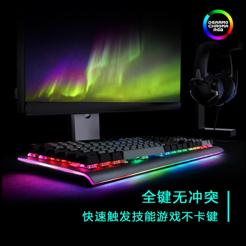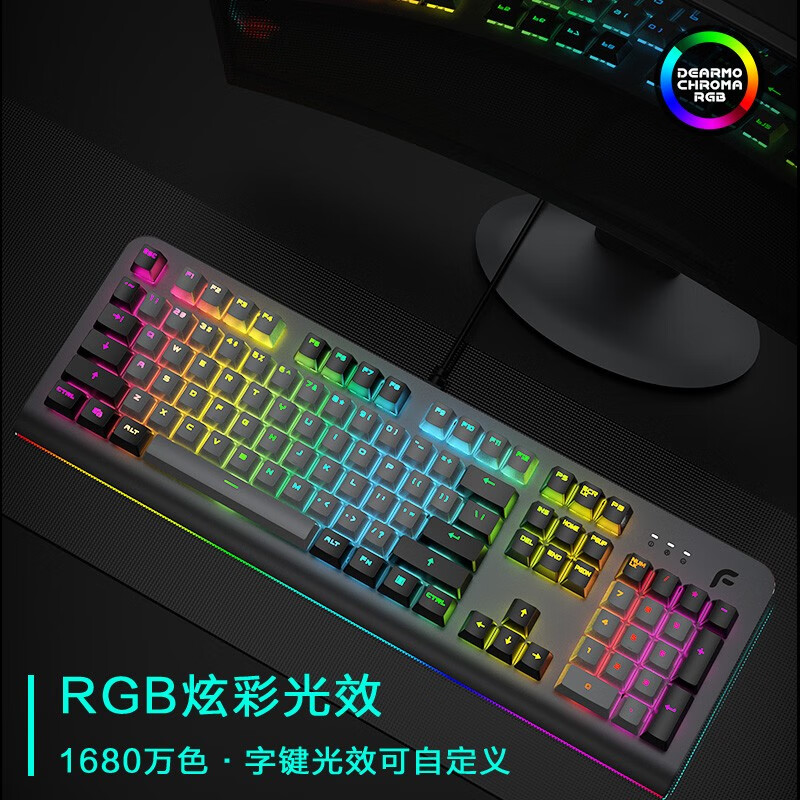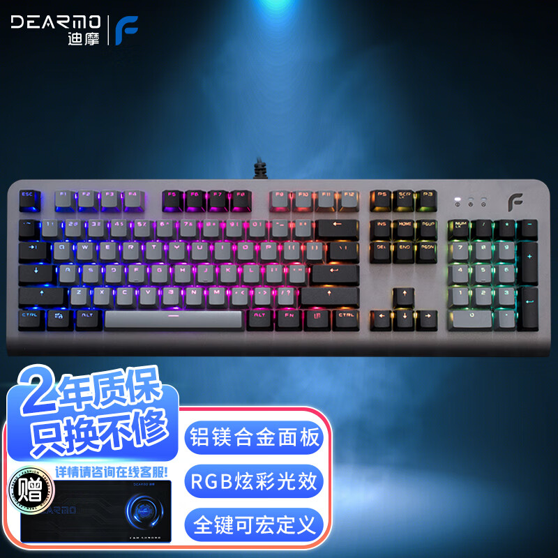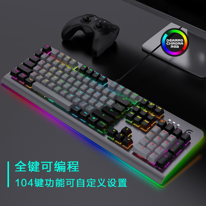 迪摩(DEARMO)F31机械键盘有线键盘游戏键盘104键RGB背光键盘吃鸡键盘电脑键盘 深空灰 红轴价格:159.00元!