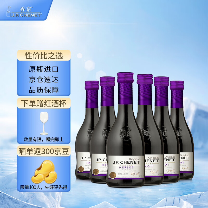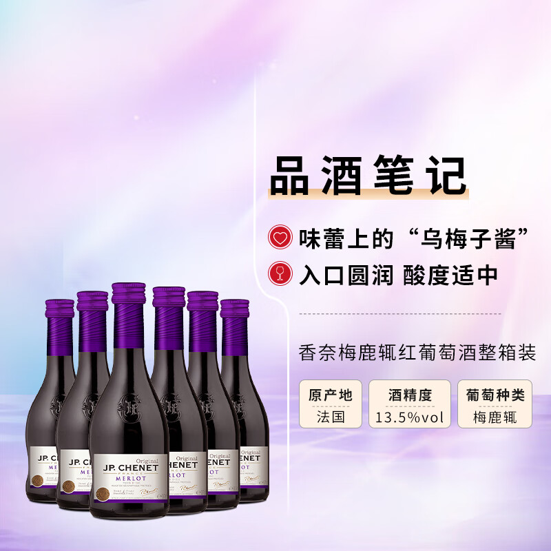 香奈(J.P.CHENET)梅鹿辄红葡萄酒 187ml*6 整箱装价格:199.00元!
