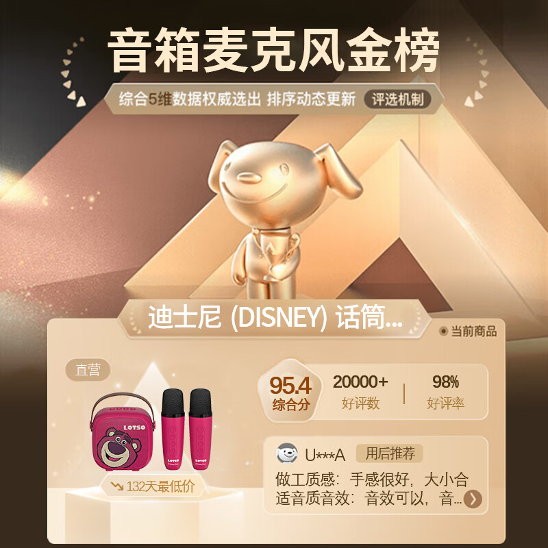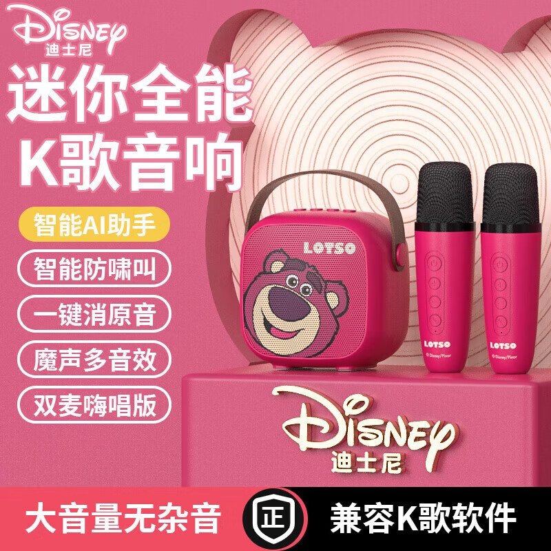 迪士尼(DISNEY)话筒音响一体麦克风k歌音箱自带声卡无线蓝牙手机直播儿童生日礼物玩具家庭ktv音响套装MK01米妮粉价格:149.00元!