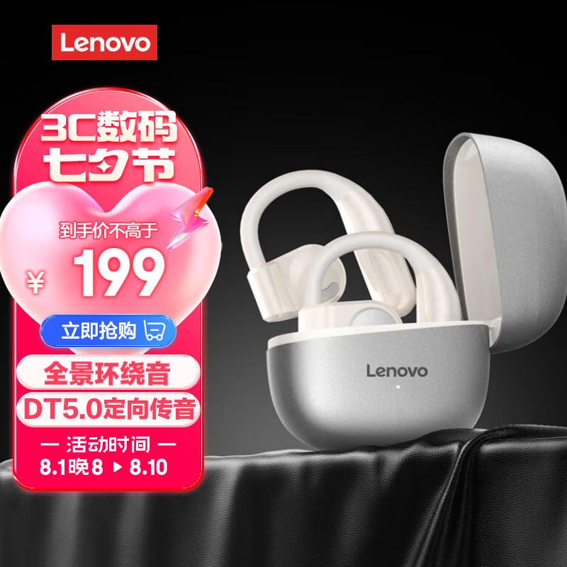 联想(lenovo)蓝牙耳机挂耳式骨传导概念开放式真无线不入耳舒适运动跑步通话降噪适用于苹果华为TC3401银白色价格:199.00元!