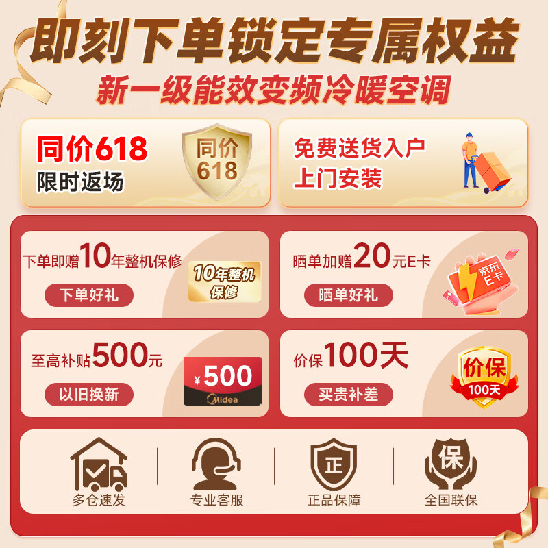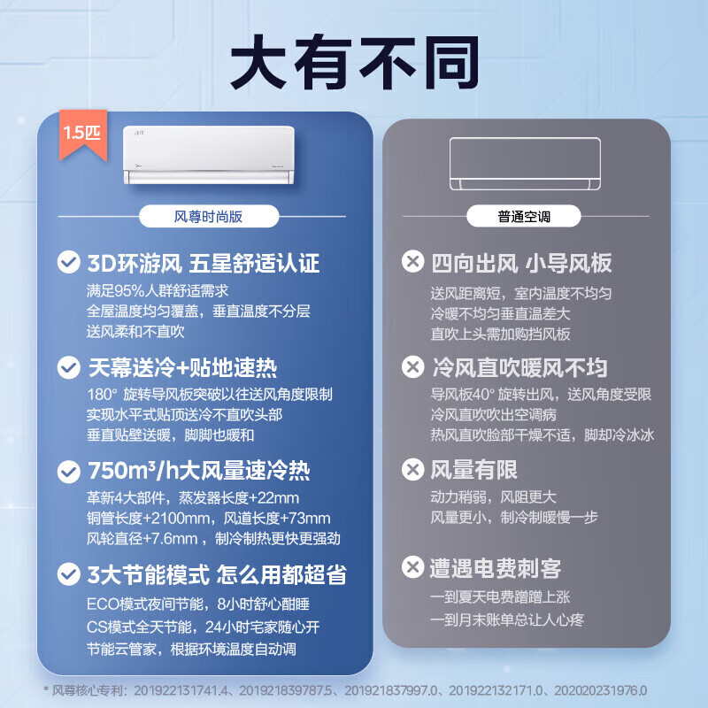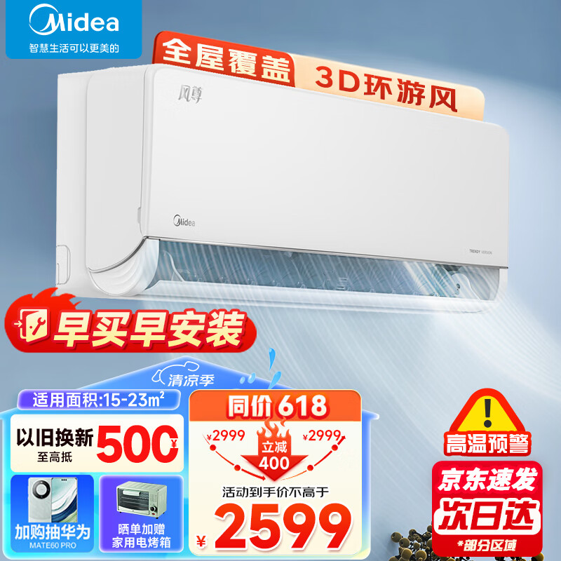 美的空调 大1.5匹 风尊 时尚版 新一级能效 变频冷暖 壁挂式空调挂机 以旧换新 KFR-35GW/N8MXC1价格:2599.00元!