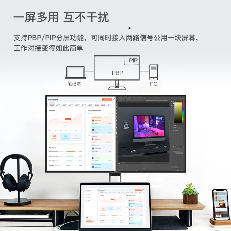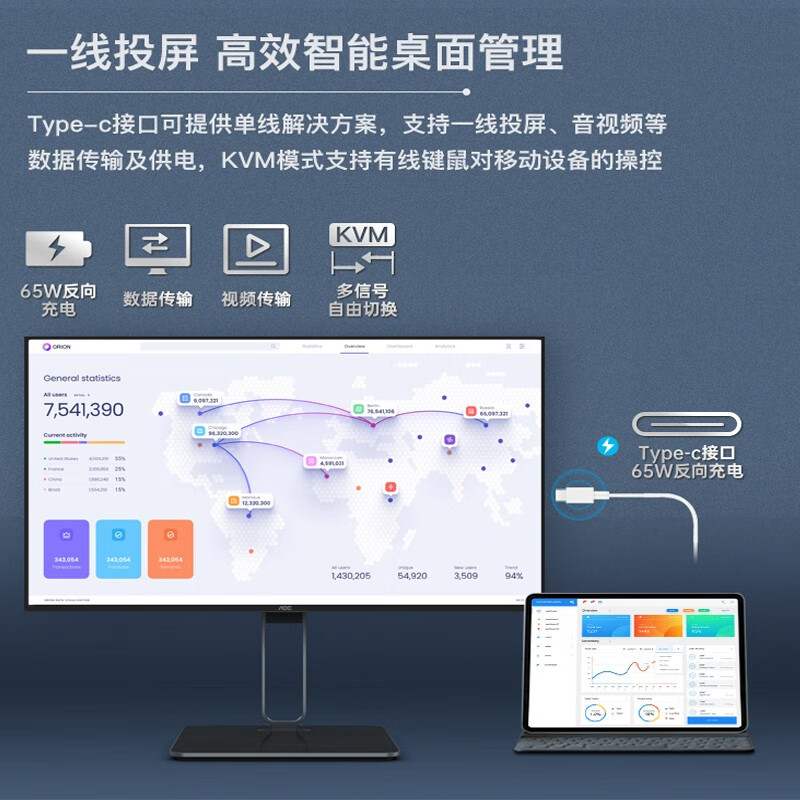 AOC 27英寸4K 65Wtype-c接口 HDR400 AH-IPS广视角硬屏109% sRGB 专业设计办公旋转升降支架U27U2价格:2199.00元!