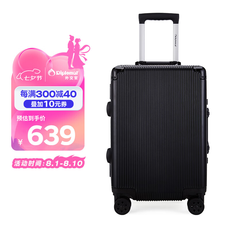 Diplomat外交官行李箱带护角铝框箱拉杆箱双TSA密码锁登机旅行箱TC-9182价格:729.00元!