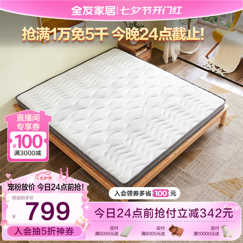 全友家居 天然环保椰棕床垫1.8x2米薄款偏硬家用榻榻米床垫子105189价格:1141.43元!