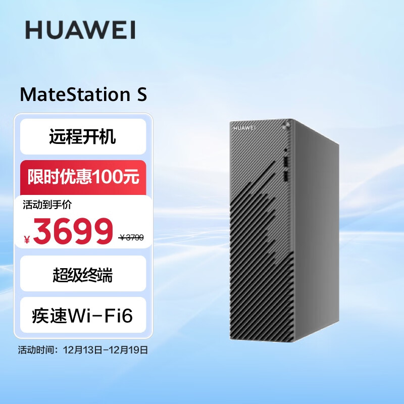华为MateStation S 商务台式机电脑整机 小机箱 i5 16G 1T SSD WIN11 远程开机 超级终端 Wi-Fi 6价格:3699.00元!