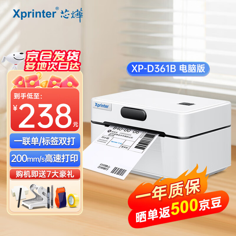芯烨(XINYE) XP-D361B便携式一联单快递单电子面单打印机 热敏标签 条码不干胶商用打印机价格:258.00元!