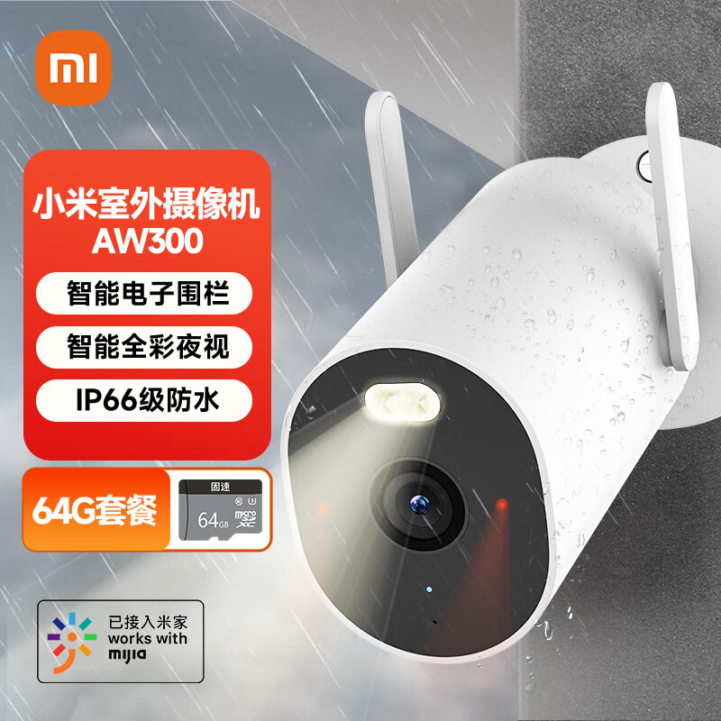 小米室外摄像头AW300+64G存储卡米家智能家用监控器 2K高清全彩夜视门口户外网络手机远程wifi价格:219.00元!