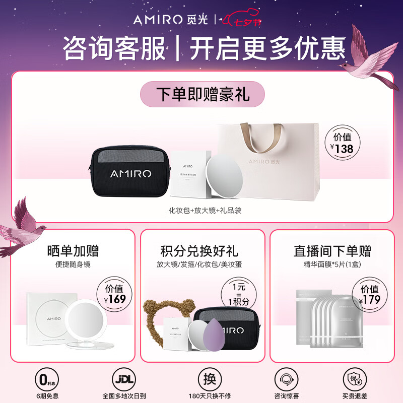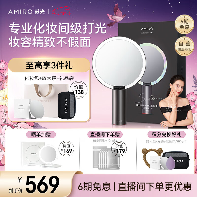 AMIRO觅光化妆镜带灯led桌面梳妆镜子O2小黑镜智能美妆镜 七夕情人节礼物生日送女友老婆价格:699.00元!