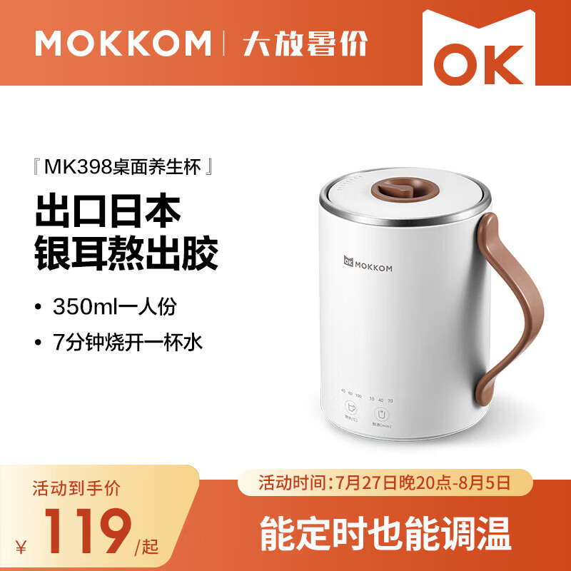 mokkom磨客养生壶桌面迷你养生杯电热水杯热水壶家用旅行便携煮茶器小型花茶壶熬粥煲汤MK398牛奶白价格:119.00元!