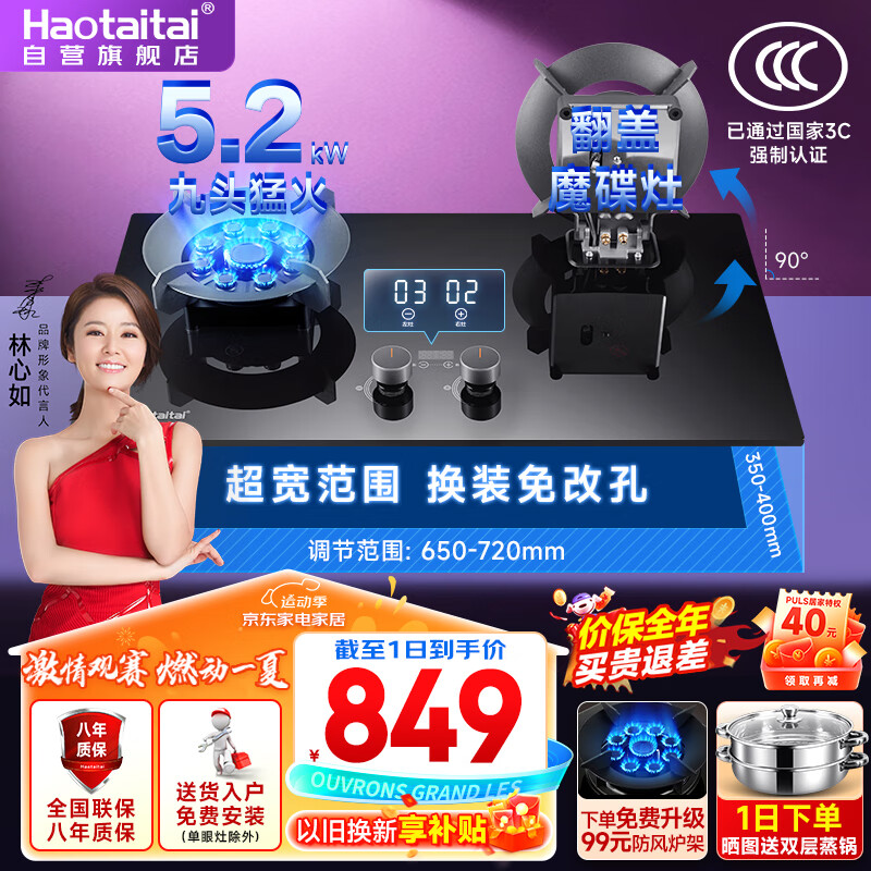 Haotaitai 家庭好用燃气灶具5.2KW智能定时魔碟家用猛火太太燃气灶台嵌入式可翻盖炉头燃气灶具M2-D 天然气价格:1049.00元!