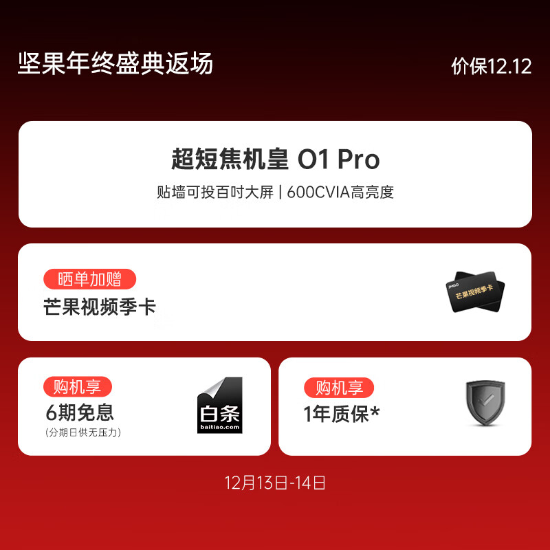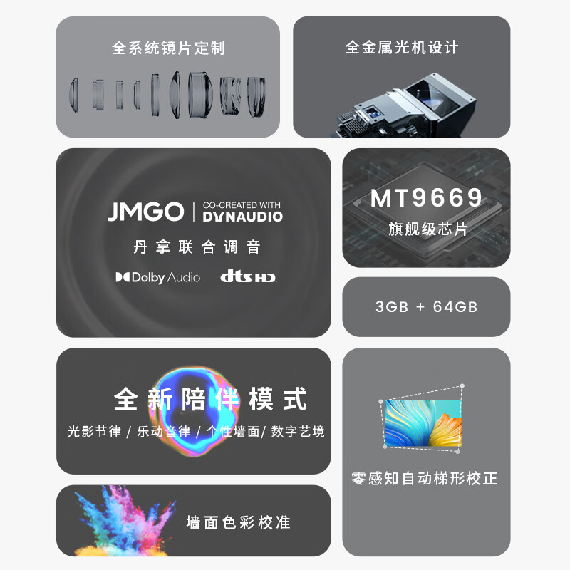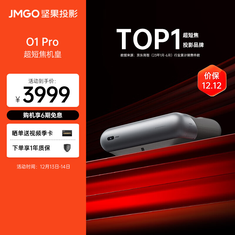 坚果(JMGO)O1 Pro旗舰超短焦投影仪家用 智能家庭影院白天可看( 丹拿调音 激光电视平替)价格:3999.00元!
