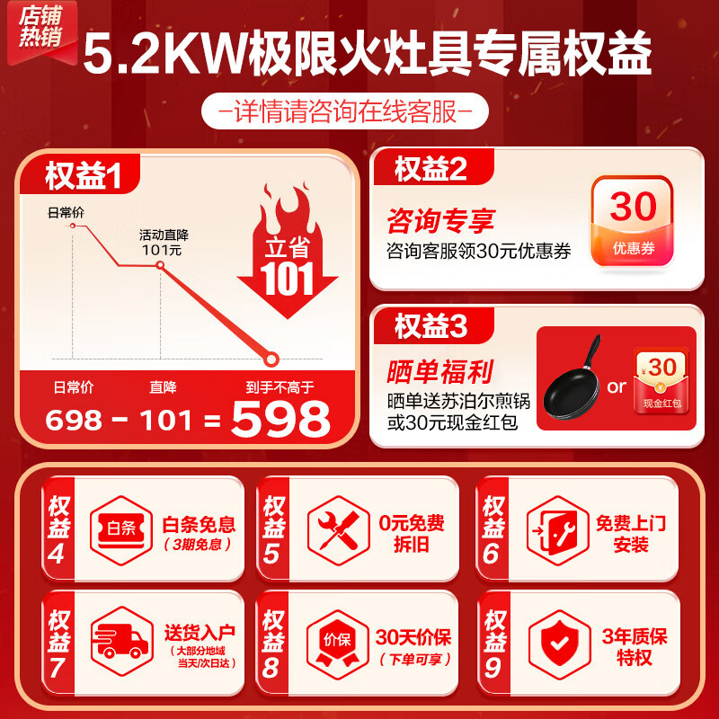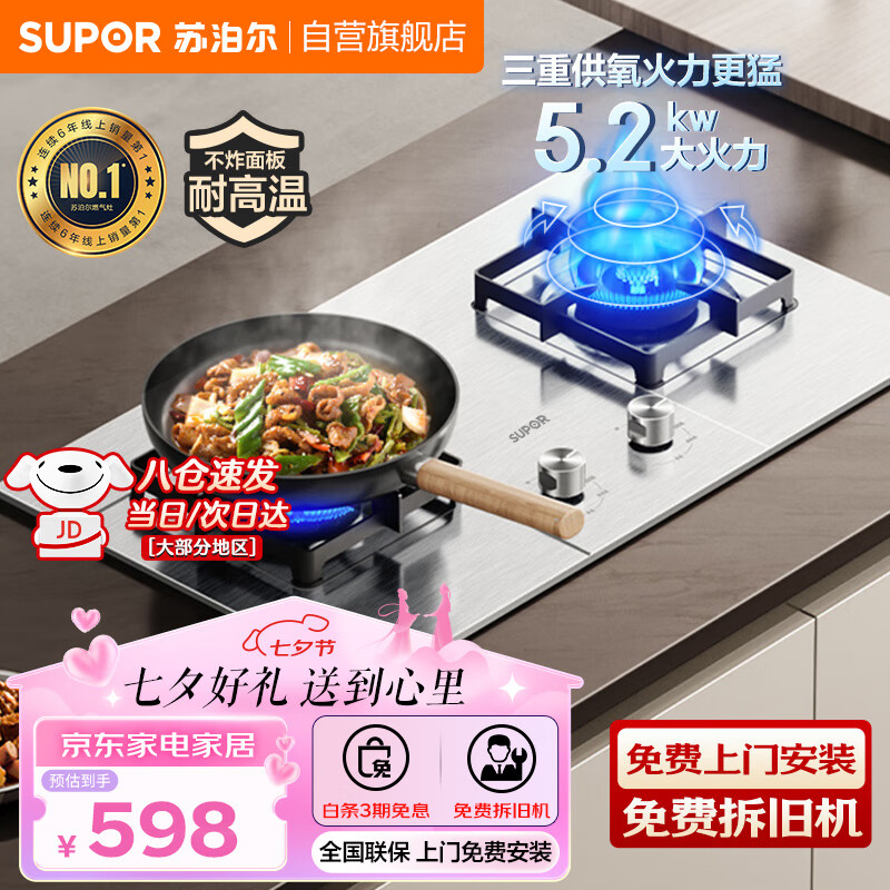苏泊尔(SUPOR)燃气灶天然气不锈钢双灶家用液化气双灶具极限火5.2KW家用超大火力不锈钢双灶台嵌两用灶台NS30 【管道天然气】5.2KW猛火灶 台价格:598.00元!
