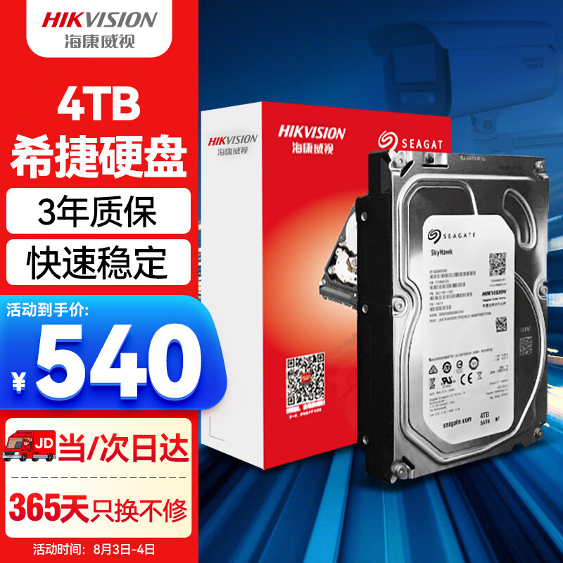 HIKVISION海康威视HIKVISION4TB监控硬盘希捷机械硬盘安防视频录像机监控专用5400转SATA ST4000VX015价格:540.00元!