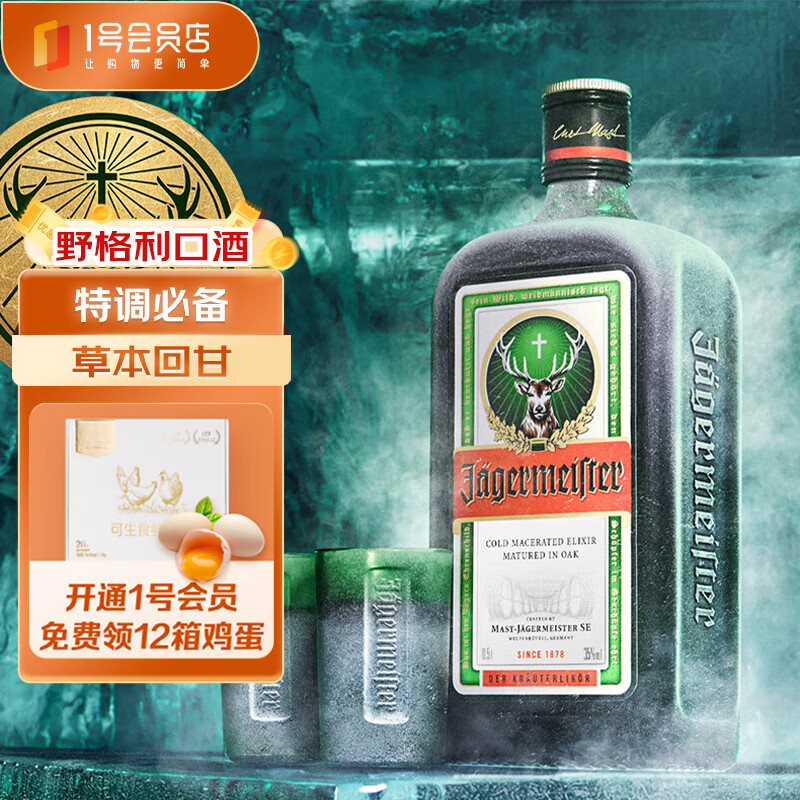 野格(Jagerneister)德国进口 野格圣鹿利口酒 力娇酒 露营晚安酒500ml 1号会员店价格:65.00元!