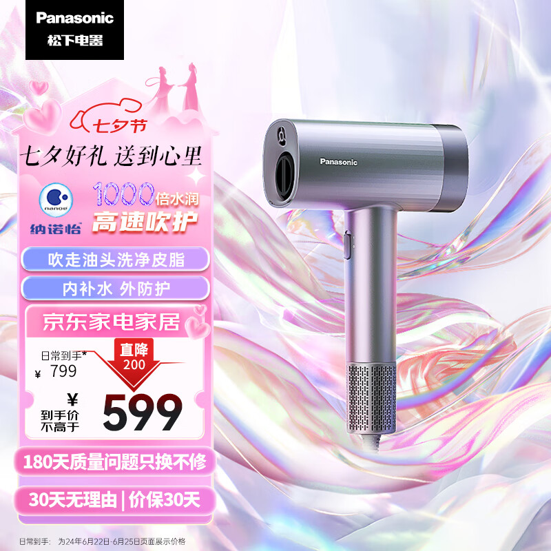 松下(Panasonic)高速吹风机家用大功率吹头发电吹风大风力速干护发纳诺怡护发情人节送礼吹风筒紫色NW90绮光镭射紫价格:679.00元!