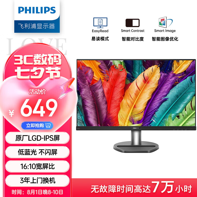 飞利浦(PHILIPS)22.5英寸 办公显示器 16:10宽屏 LGD-IPS 低蓝光护眼 支持壁挂 HDMI+VGA 电脑显示屏 230S8QHSB价格:649.00元!