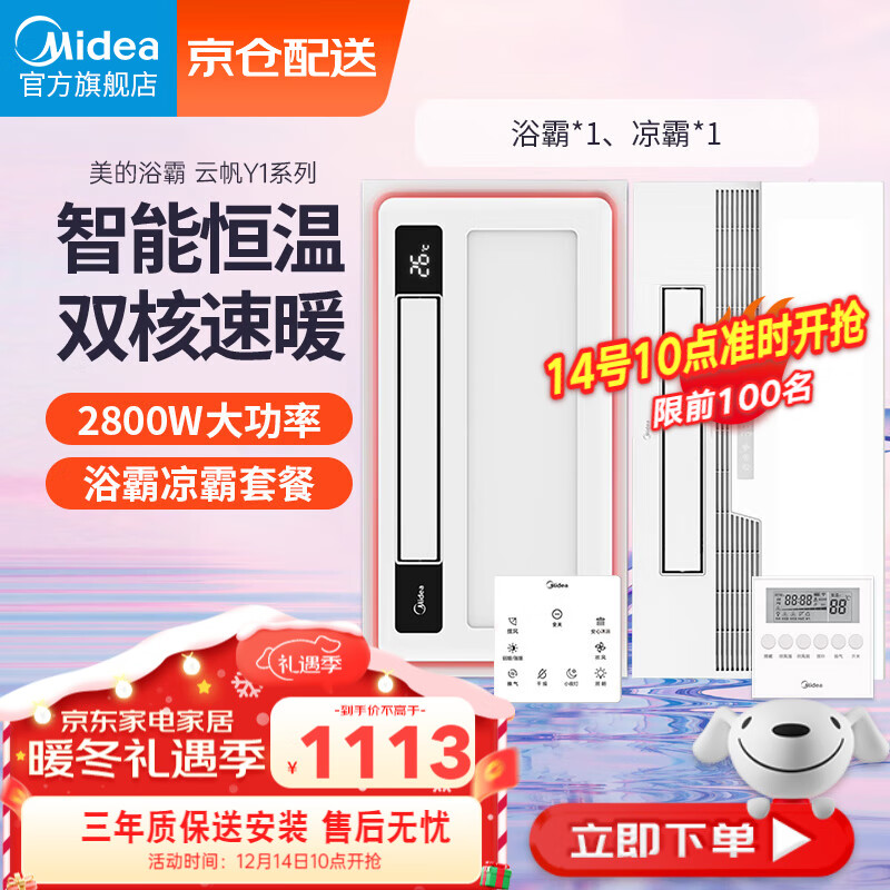 美的(Midea)浴霸风暖浴室取暖器集成吊顶排气扇照明一体双电机卫生间灯暖风机价格:1162.00元!