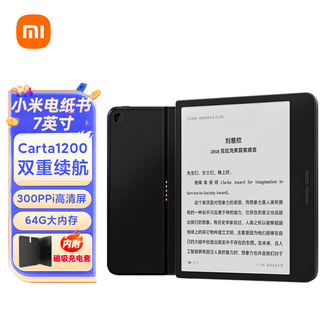 小米电纸书 7英寸墨水屏阅读器 官方标配 充电保护套 双重续航 看书学习便携阅读本64GB价格:1399.00元!
